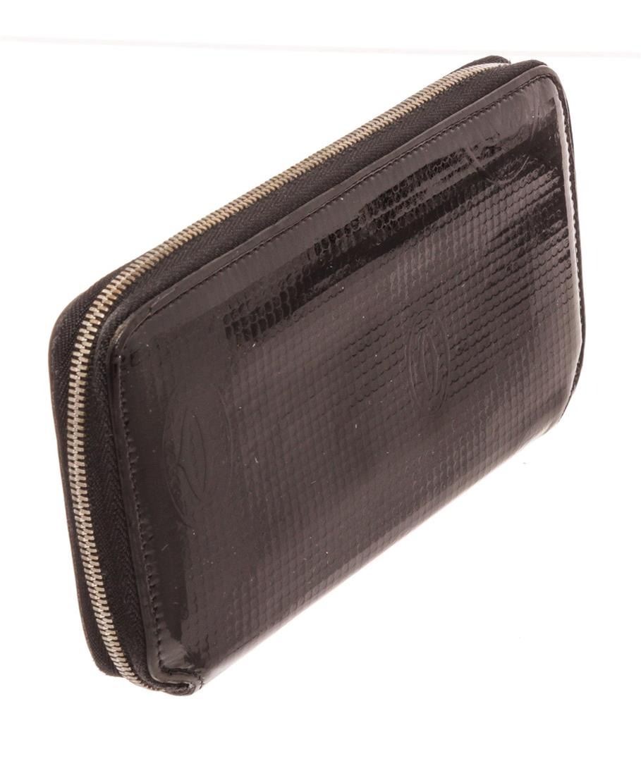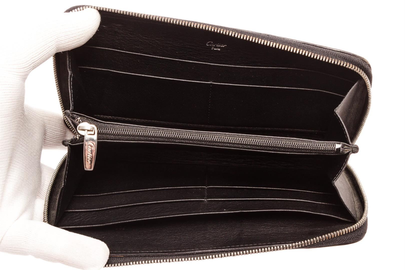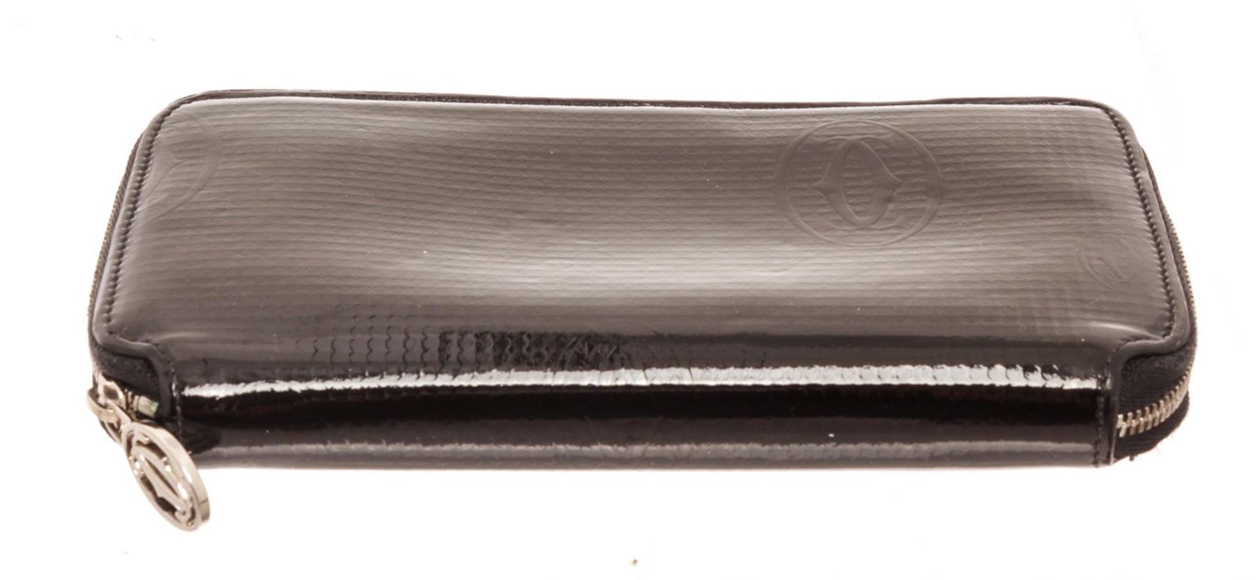 Cartier Black Long Zip Wallet with gold-tone hardware, trim leather, interior three compartments pocket and zipper closure.