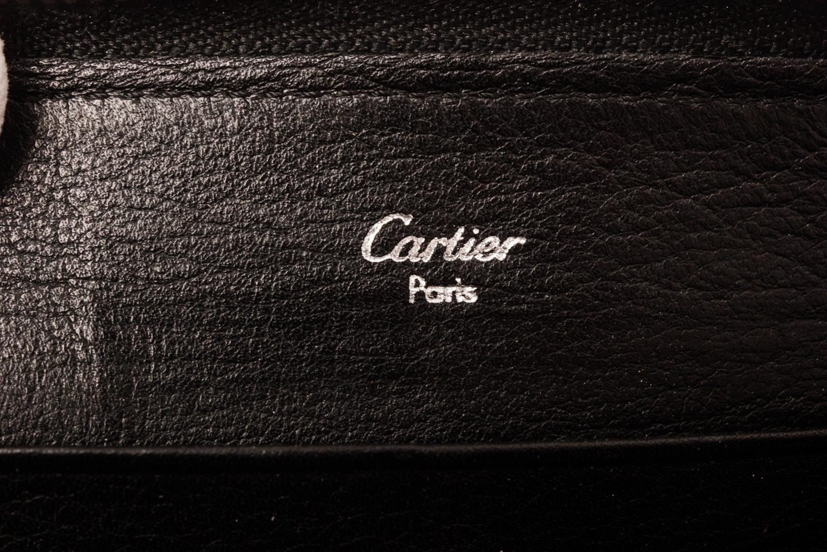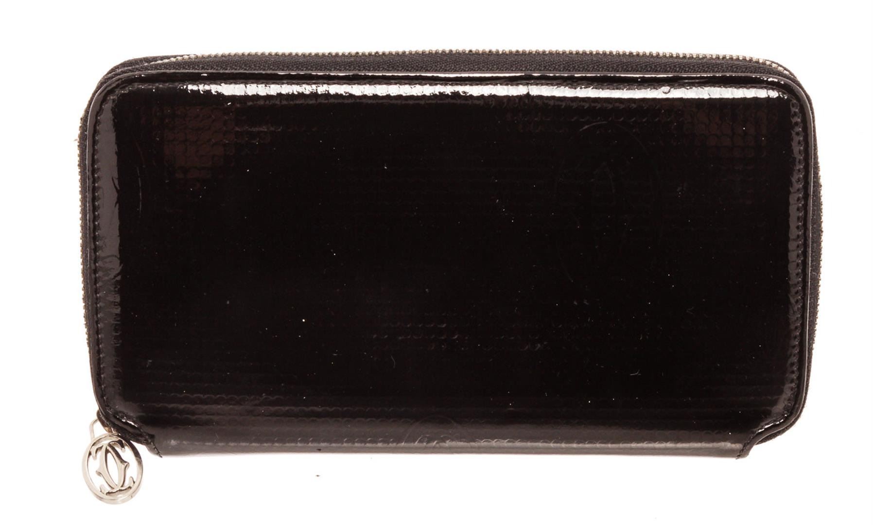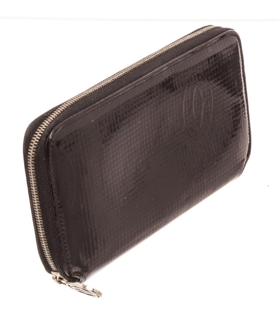 Cartier Black Long Zip Wallet with gold-tone hardware, trim leather, interior three compartments pocket and zipper closure.