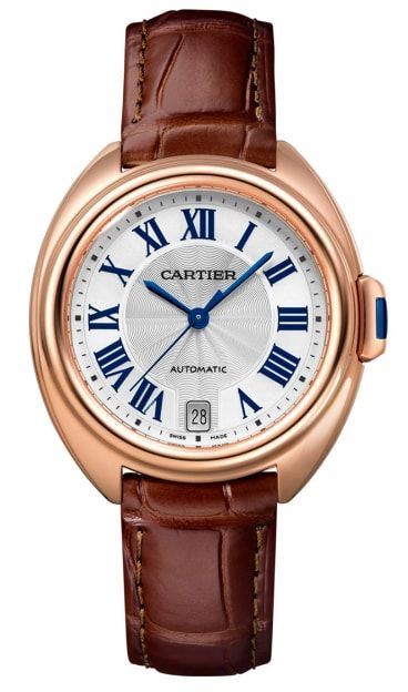 Model: WGCL0013 - CASE = [Material:18kt Rose Gold], [Case Diameter:35], [Case Thickness:10.09mm], [Bezel:Fixed], [Case Back:Solid], [Water Resistant:30 Meters - 100 Feet], [Crystal:Scratch Resistant Sapphire], DIAL = [Color:Silver Dial with Roman Nermeral Markers and Blue Hands], MOVEMENT = [Type:Automatic], [Crown:Push In], BAND = [Clasp:Tang], [Type:Brown Alligator Leather], (Usually ships in 1 to 2 weeks.)
