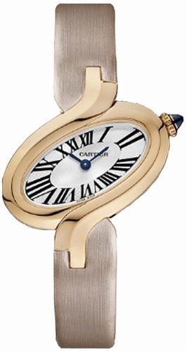 Model: W8100009 - CASE = [Material:18K Rose Gold Oval Shaped], [Case Diameter:32], [Case Thickness:7.2mm], [Bezel:Designed 18K Polished Rose Gold], [Case Back:Solid], [Water Resistant:30 Meters - 100 Feet], [Crystal:Scratch Resistant Sapphire], DIAL = [Color:Lacquered Silver with Blue Sword Shaped Hands], MOVEMENT = [Type:Battery Powered Quartz Calibre 157], [Crown:Circular Grained 18K rose Gold Set with a Sapphire Cabochon], BAND = [Clasp:Tang], [Type:Toile Brossée or “Brushed Canvasâ€], (Usually ships in 2 to 4 business days.)