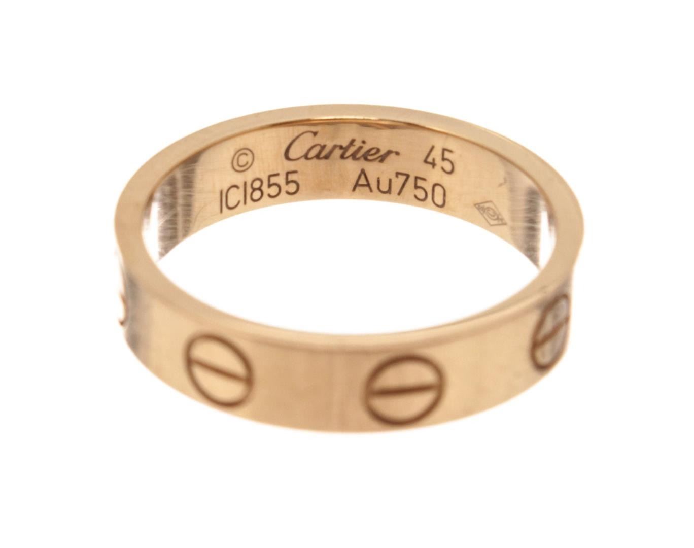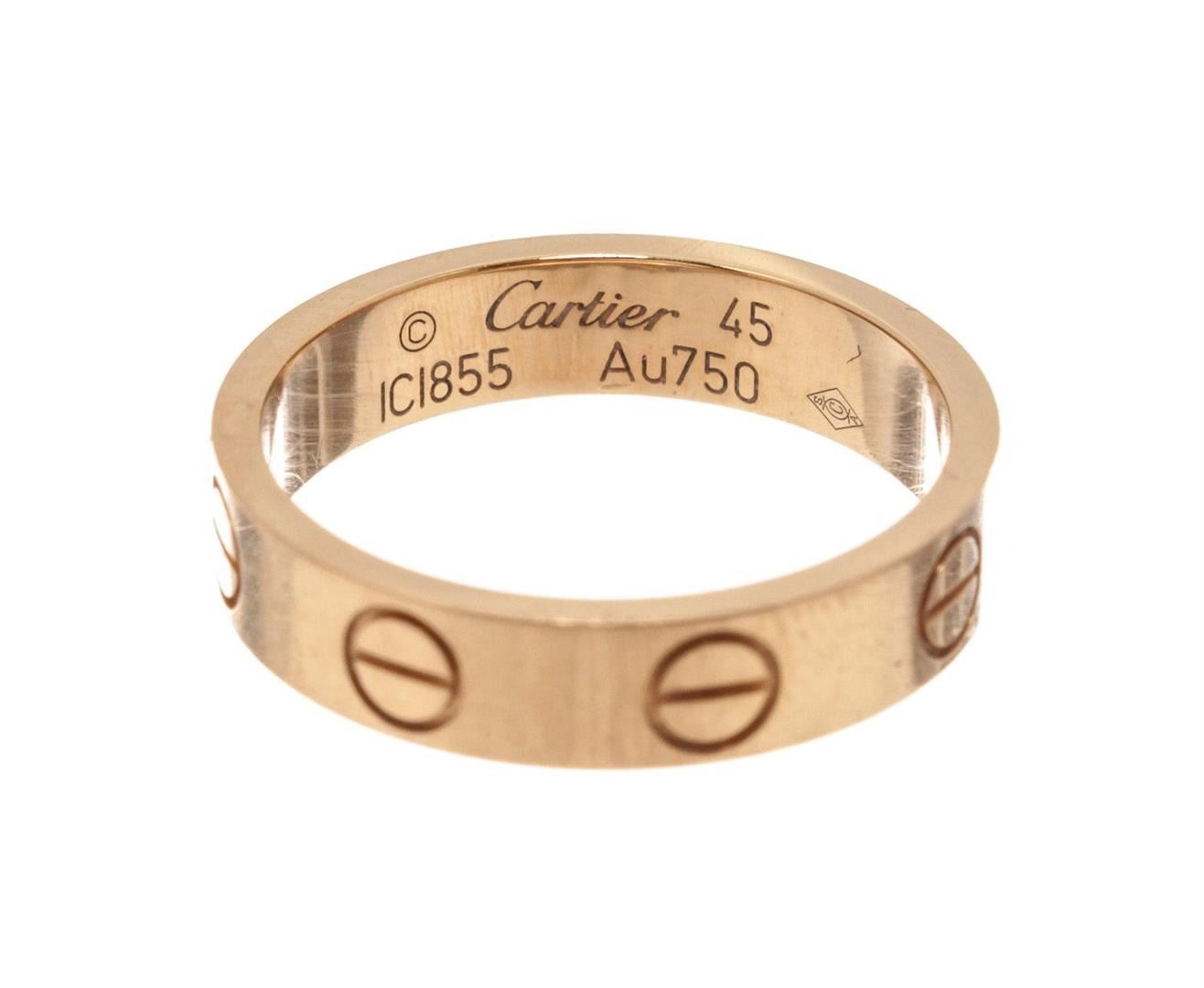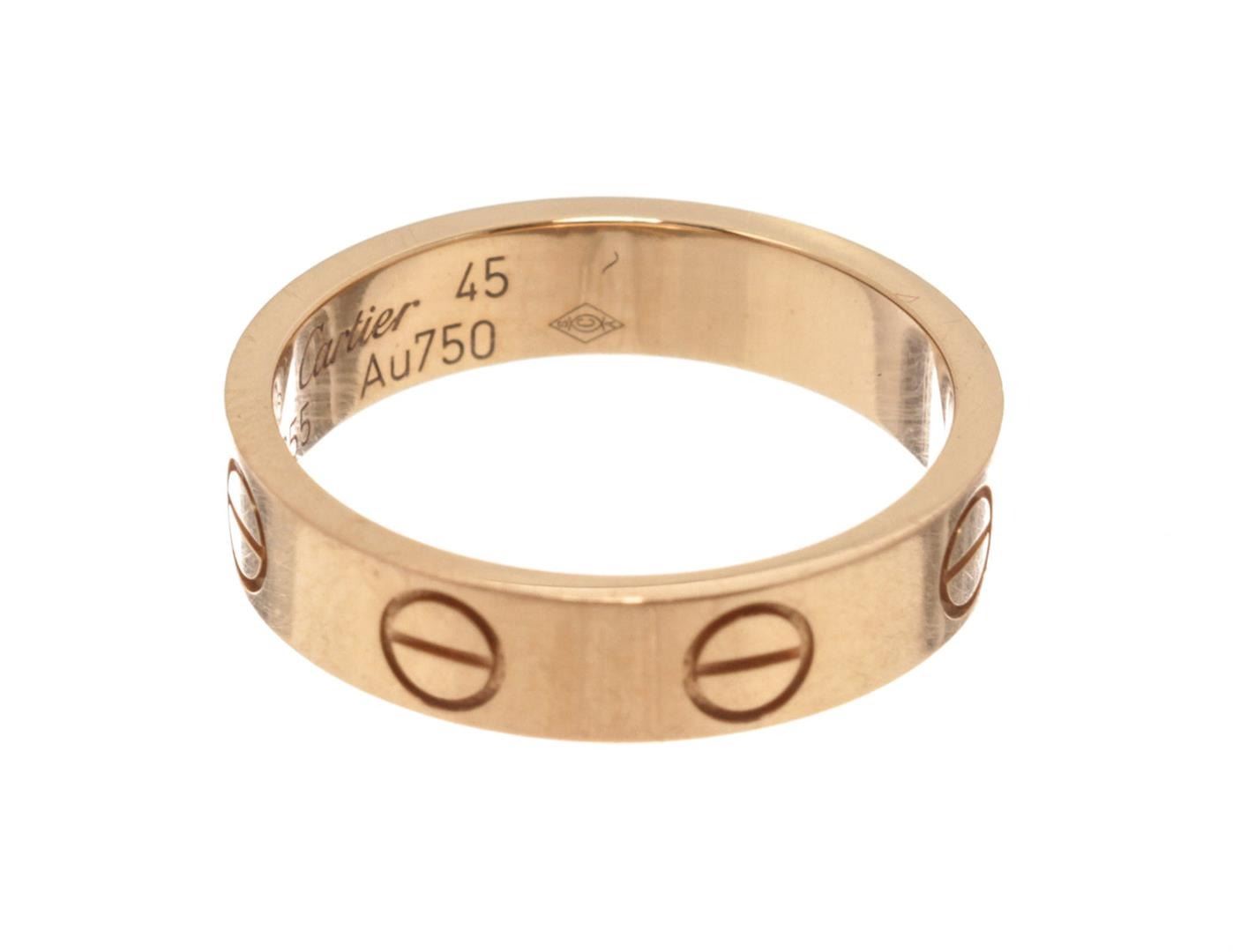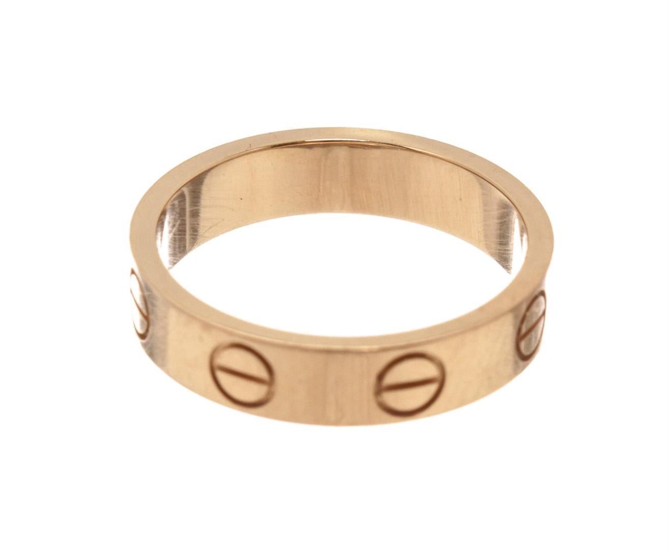 Constructed in 18K yellow gold, Cartier Mini Love Ring features screw details all around the surface as symbols of a sealed and secured bond.