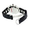 One Cartier must 21 Chronoscaph wristwatch electronically tested stainless steel, Case: 38mm diameter, Case Back: engraved with the manufacturers name, model, information, and ID numbers, secured by eight set screws, Crown: set with a dark blue cabochon, Bezel: fixed, with engraved Roman numerals, Crystal: synthetic sapphire. Case Ring: raised minute track with five minute numeral intervals, Movement: Swiss quartz, Cartier signed Dial: Cartier repeating motif, with luminous pointed hands, Chronograph Functions: three sub dials for continuous seconds, minutes, and hours, Date Window: four o'clock position.Cartier Bracelet: stainless steel & rubber links, Condition: G-5 Fine. Seven and one half inch length. Cartier signed concealed deployment clasp. Total Weight of Watch 88.27gm. AIG Appraised at $3,990.00.