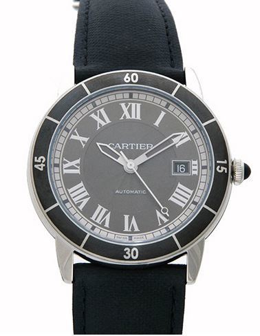 Model: WSRN0003 - CASE = [Material:Stainless Steel], [Case Diameter:42], [Case Thickness:9.7mm], [Bezel:Fixed], [Water Resistant:100 Meters - 330 Feet], [Crystal:Scratch Resistant Sapphire], DIAL = [Color:Grey with Silver Hands and Roman Numerals], MOVEMENT = [Type:Automatic], BAND = [Clasp:Deployment], [Type:Black Leather], (In Stock - Ready to ship.)