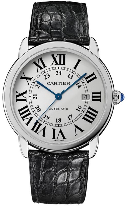 Model: W6701010 - CASE = [Material:Polished Stainless Steel], [Case Diameter:42], [Case Thickness:8.36mm], [Bezel:Fixed], [Case Back:Solid], [Water Resistant:30 Meters /100 feet], [Crystal:Scratch Resistant Sapphire], DIAL = [Color:Silver Opaline with Roman Numeral Hour Markers and Blued Steel Hands], MOVEMENT = [Type:Automatic Self Winding with Caliber Cartier 049], [Crown:Stainless Steel], BAND = [Clasp:Deployment Buckle], [Type:Black Crocodile Leather], (In Stock - Ready to ship.)