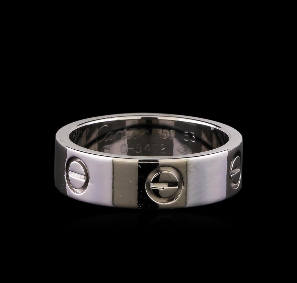 One 18 kt white gold ring with markings of "Cartier" and "750"