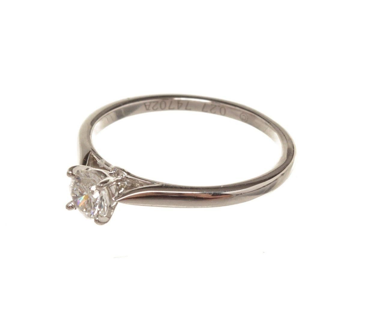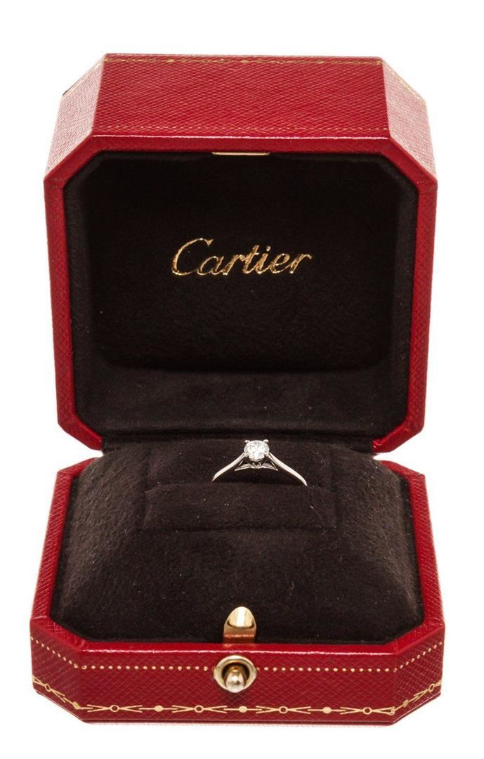 Cartier Silver Diamond 27 ct Ring with material leather, silver-tone hardware.