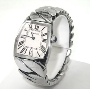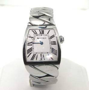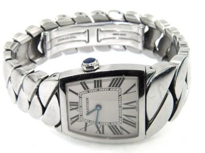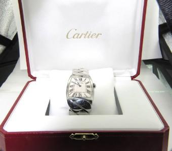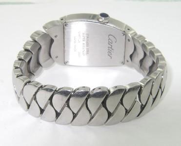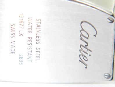 Cartier Stainless Steel Quartz Watch with Original Box.The total watch's weight is 105.9 grams.The measurements of watch head is 28 x 29 mm and 9 mm thick.The length of watch: 6.75".water resistant.swiss made.Chain is 12 mm wide
