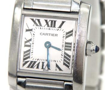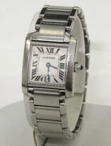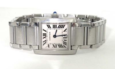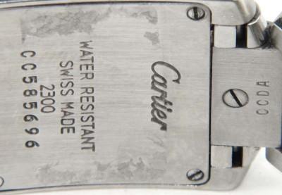 Cartier Stainless Steel Watch. The total watch's weight is 56.8 grams. The measurements of watch head is 16 x 19 mm and 4 mm thick. The length of watch: 6.5". water resistant swiss made. Chain is 13 mm wide.