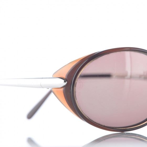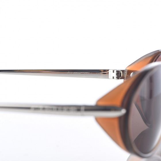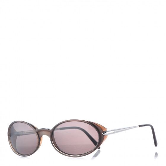 These stylish sunglasses features narrow oval rims with tinted brown lenses and thin silver arms with brown tortoise ends.