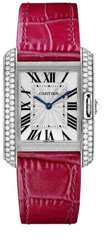 Model: WT100030 - CASE = [Material:18kt White Gold], [Case Diameter:34.7], [Case Thickness:7.1mm], [Bezel:Fixed with Diamonds], [Case Back:Solid], [Water Resistant:30 Meters - 100 Feet], [Crystal:Scratch Resistant Sapphire], DIAL = [Color:Silver], MOVEMENT = [Type:Automatic], [Crown:Push In], BAND = [Clasp:Deployment], [Type:Pink Alligator Leather], (Usually ships in 1 to 2 weeks.)