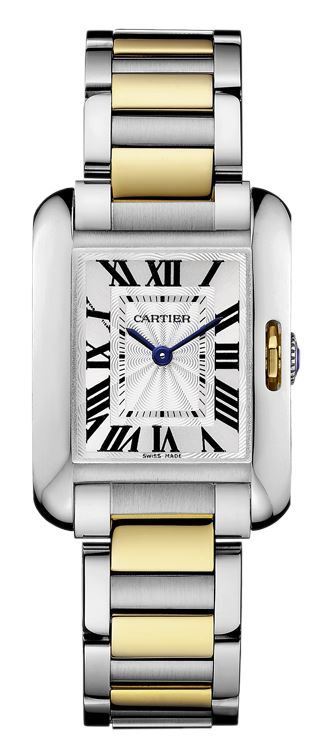 Model: W5310046 - CASE = [Material:Brushed and Polished Stainless Steel], [Case Diameter:30.2], [Case Thickness:7.19mm], [Case Back:Solid], [Water Resistant:30 Meters - 100 Feet], [Crystal:Scratch Resistant Sapphire], DIAL = [Color:Silver], MOVEMENT = [Type:Battery Powered Quartz Cartier Caliber 057], BAND = [Clasp:Hidden Folding Clasp], [Type:Brushed and Polished Stainless Steel with Polished Yellow Gold], (Usually ships in 1 to 2 business days.)