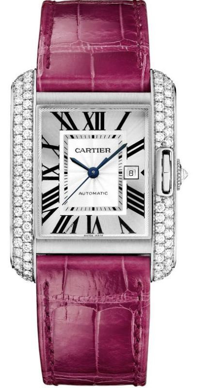 Model: WT100018 - CASE = [Material:18kt White Gold], [Case Diameter:39.2], [Case Thickness:9.5mm], [Bezel:Fixed with Diamonds], [Case Back:Solid], [Water Resistant:30 Meters - 100 Feet], [Crystal:Scratch Resistant Sapphire], DIAL = [Color:Silver], MOVEMENT = [Type:Automatic], [Crown:Push In], BAND = [Clasp:Deployment], [Type:Pink Alligator Leather], (Usually ships in 1 to 2 weeks.)