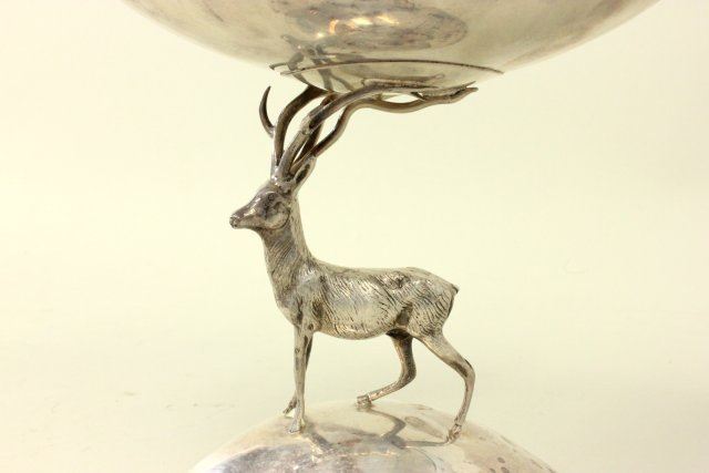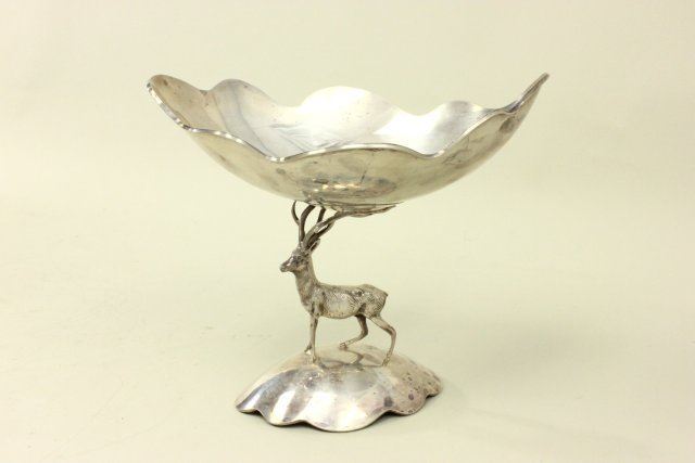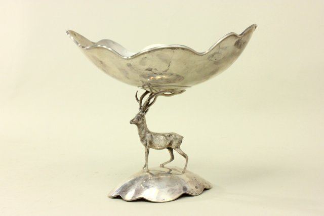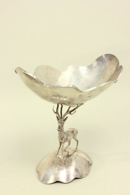 Figure of a stag, on base. Approx. 14.75 ozt, 460 gms. Approx. 8" H x 9" W x 6" D. (4043) Minor dent.