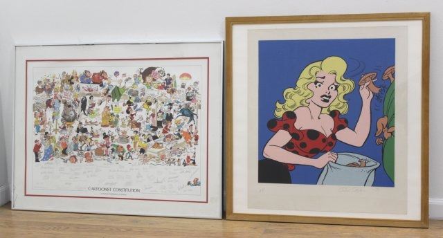 "Cartoonist Constitution," signed lithograph, numbered 164/195, approx. 23" H x 32" W sight, 28" H x 37" W framed; and Al Capp, "Daisy Mae," serigraph, pencil signed & dated '76 - A.P., approx. 28" H x 24" W sight, 32" H x 31" W framed. Crack in glass frame.