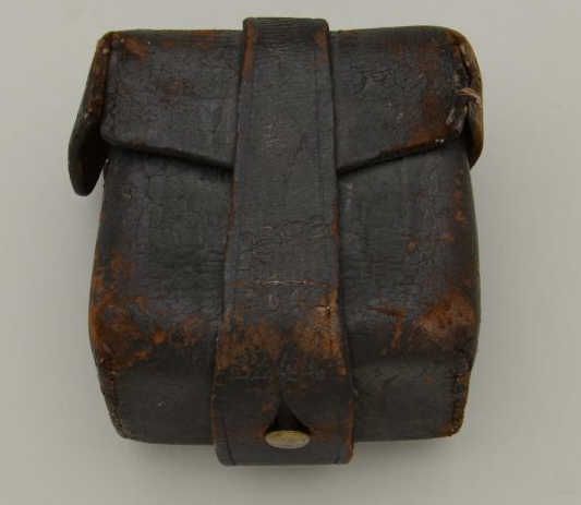 Cartridge box for rifle ammo in stripper clips (probably 7 mm) marked Montevideo with other writing that is not legible and numbers. Fair to good condition. Est.: $15-$30
