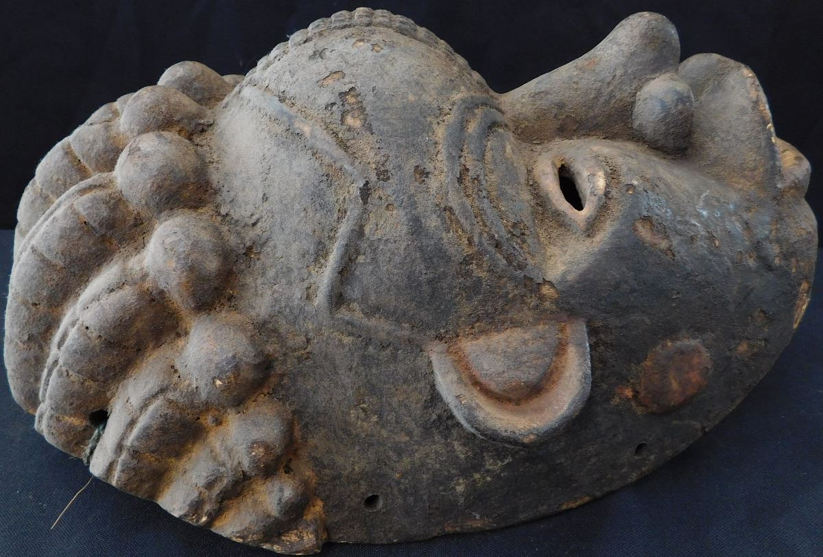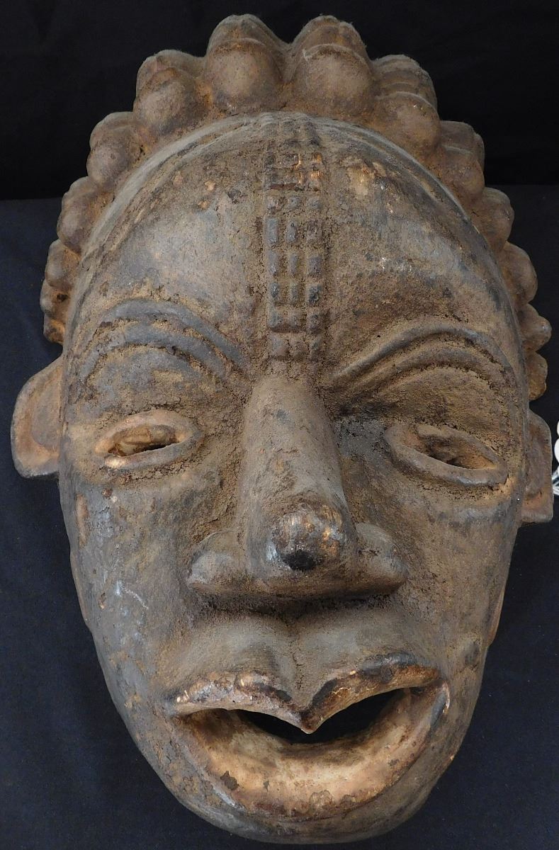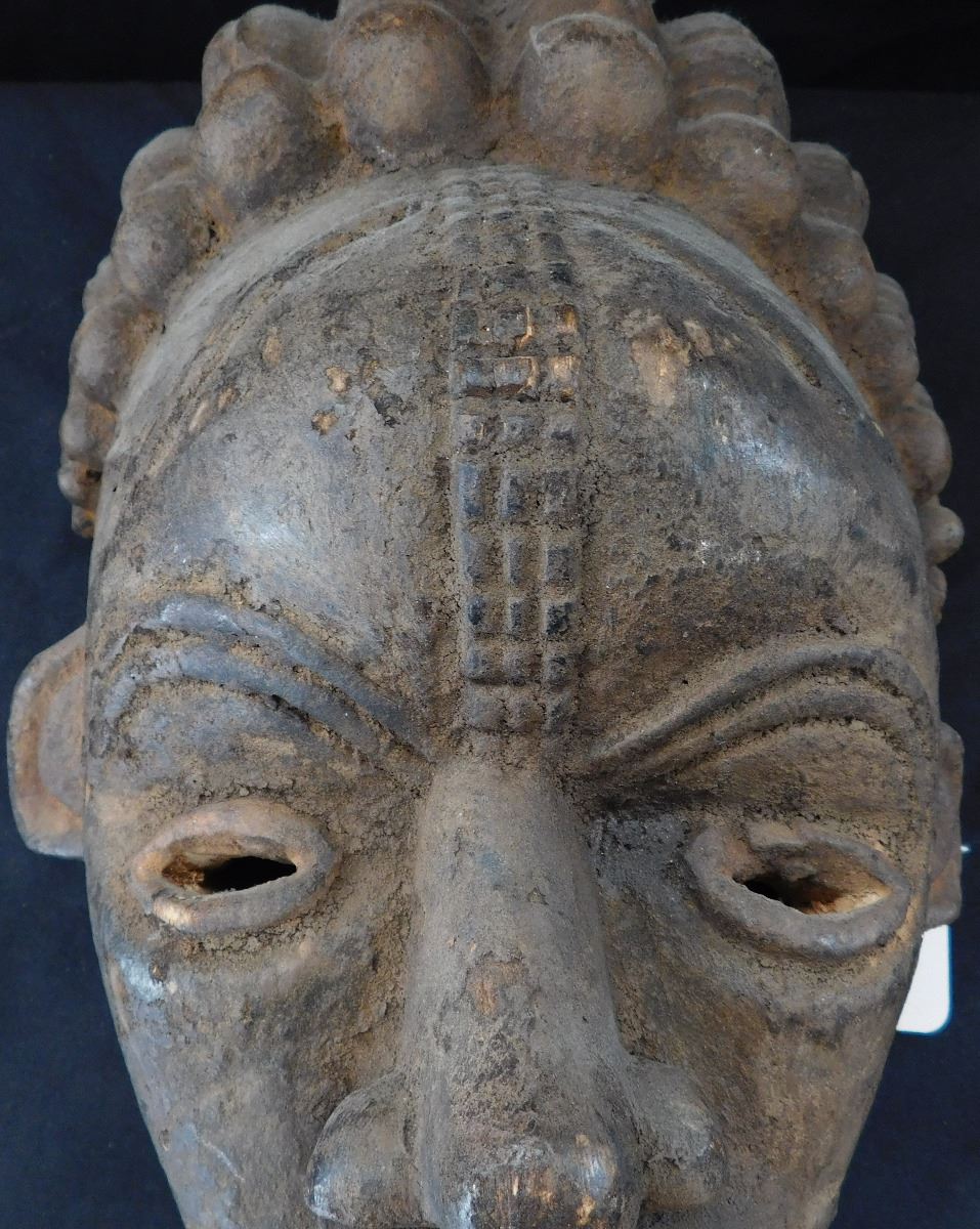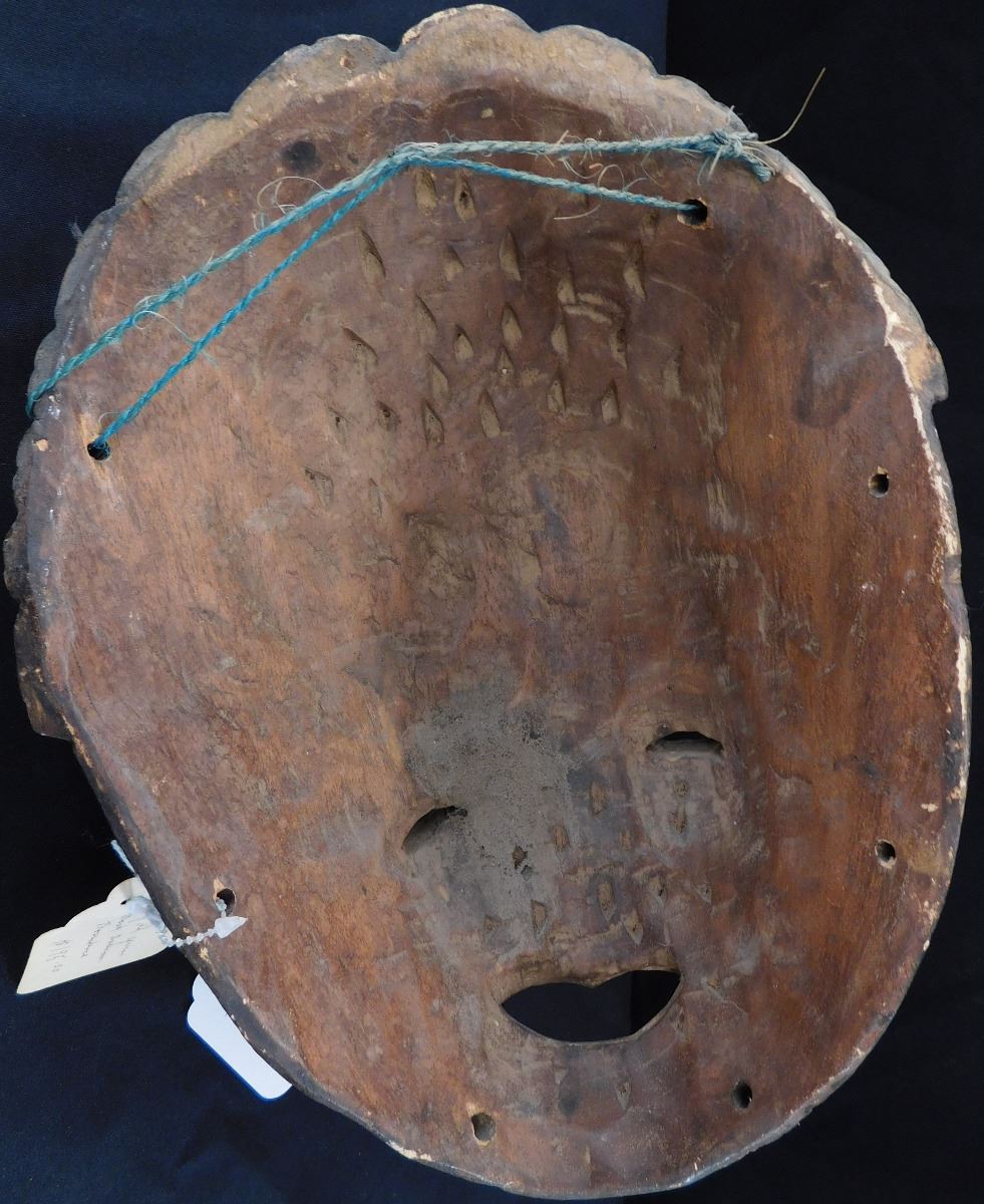 Carved African Wood Mask, circa 1900. Made of wood, item measures 13" x 8" x 7". Cameroon, Africa. Soot appears to be on face, facial scarring/carving. Very well polished on the inside from use. Condition: Minor nicks to wood, see images. Shipping: $22.00