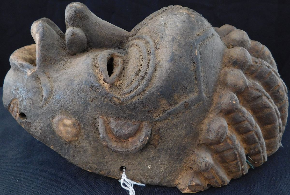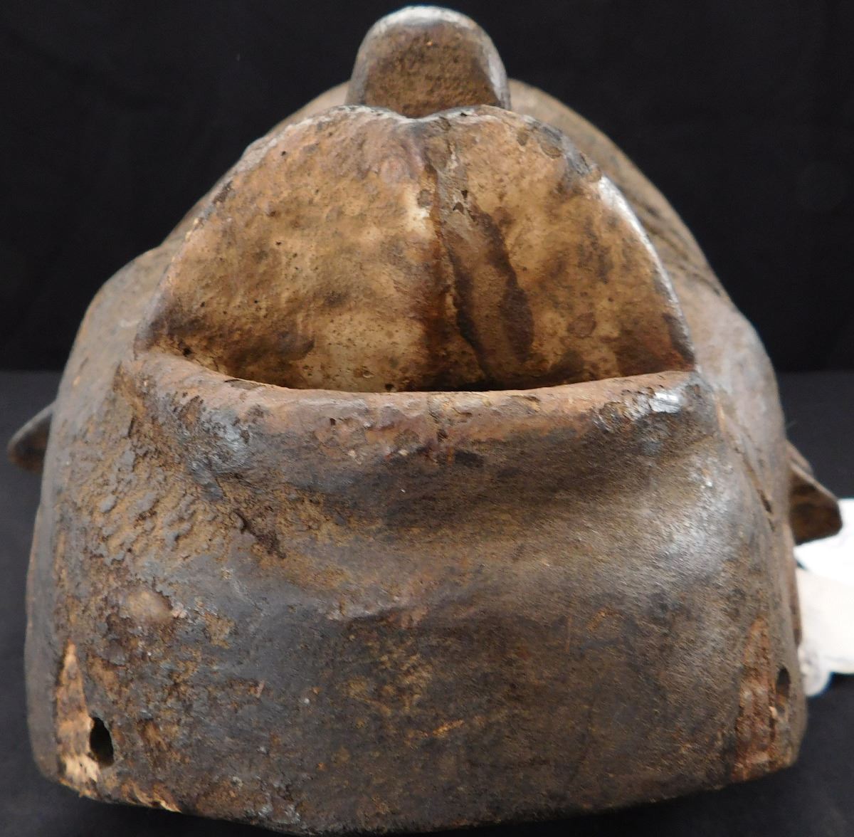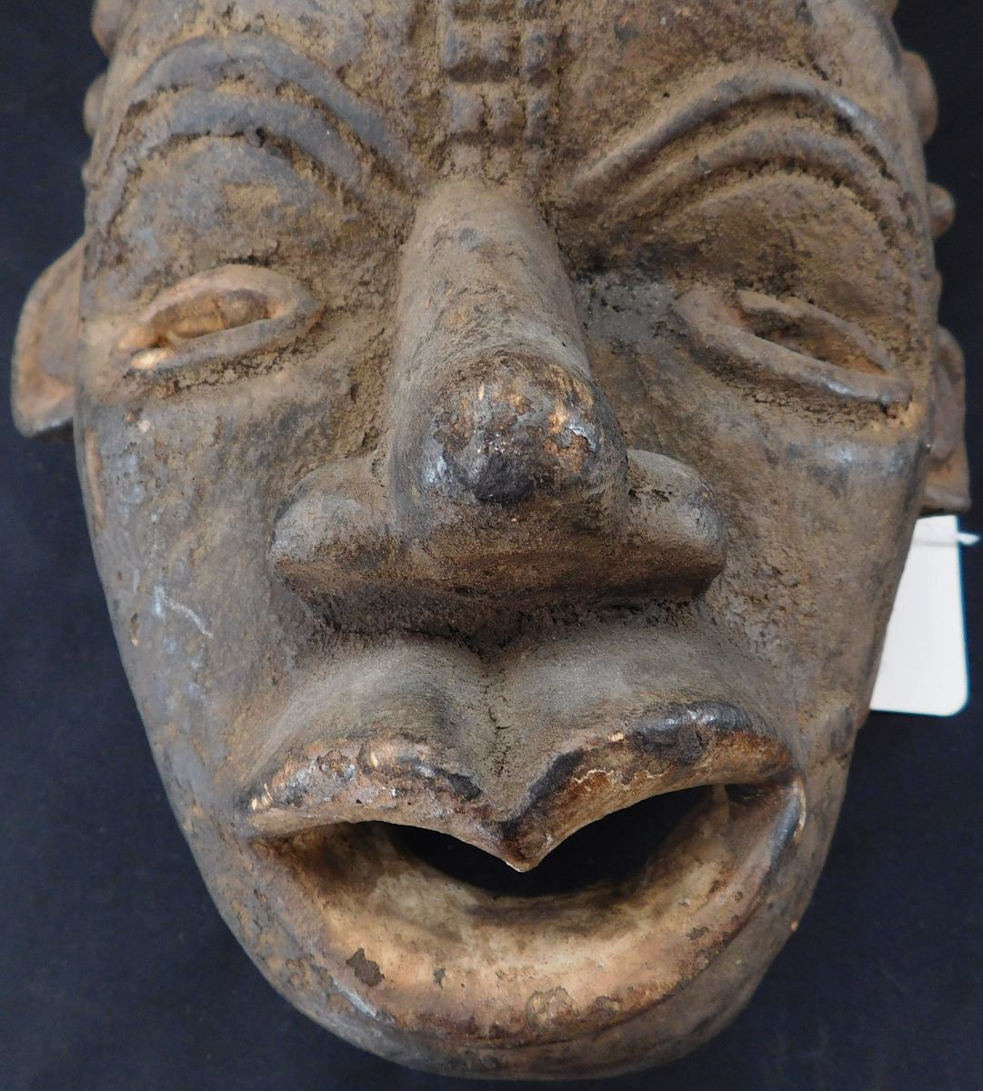 Carved African Wood Mask, circa 1900. Made of wood, item measures 13" x 8" x 7". Cameroon, Africa. Soot appears to be on face, facial scarring/carving. Very well polished on the inside from use. Condition: Minor nicks to wood, see images. Shipping: $22.00