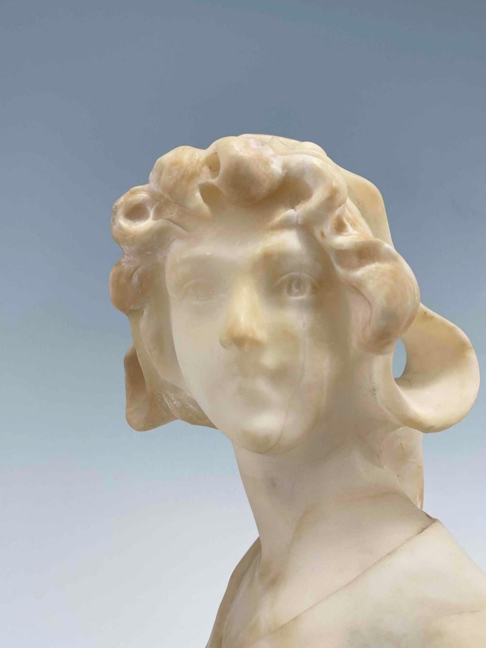 Hand Carved Alabaster Bust. Unmarked. Approximately 17.875H x 8.0W x 6.25D in.