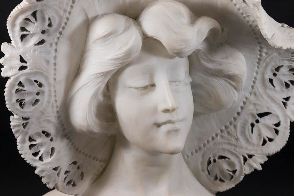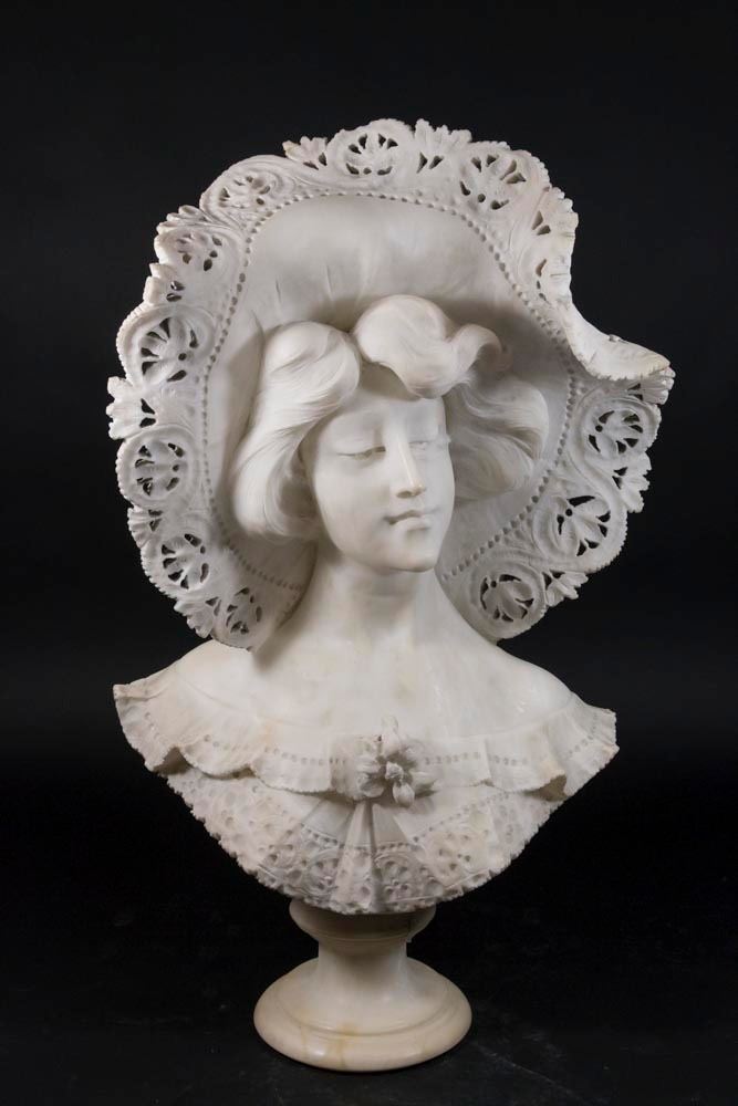 Italian. Signed. Approx. 25" H. Repairs to bonnet and pedestal.
