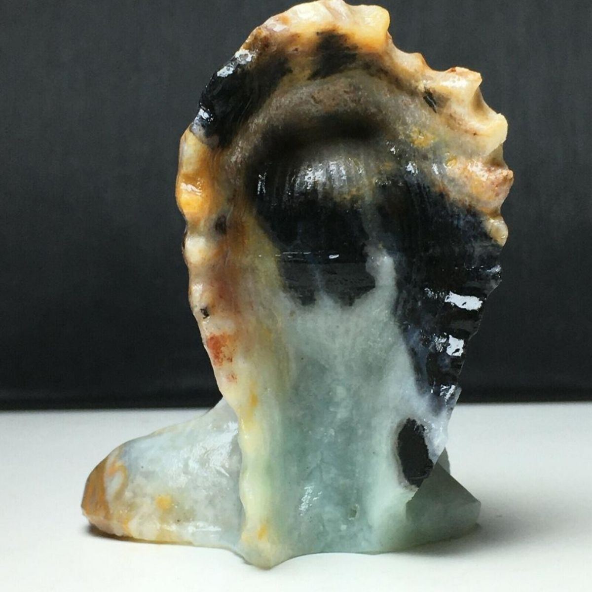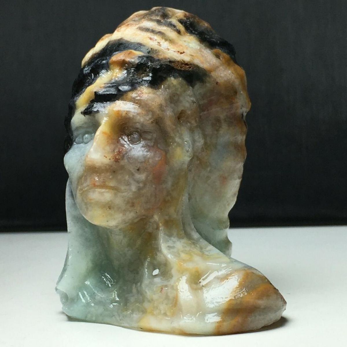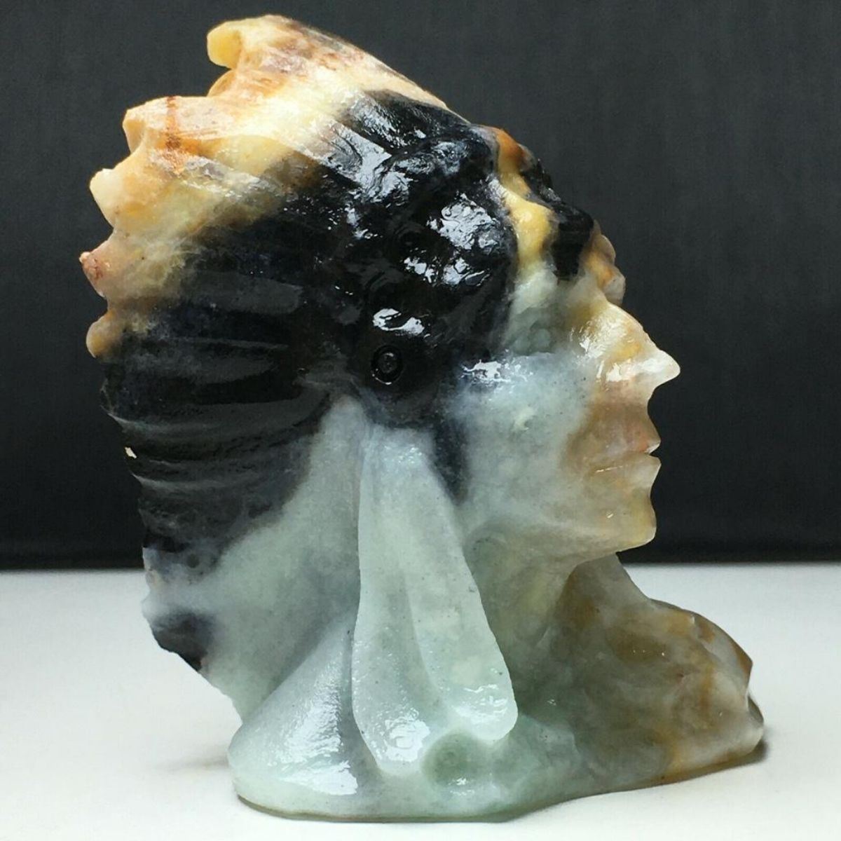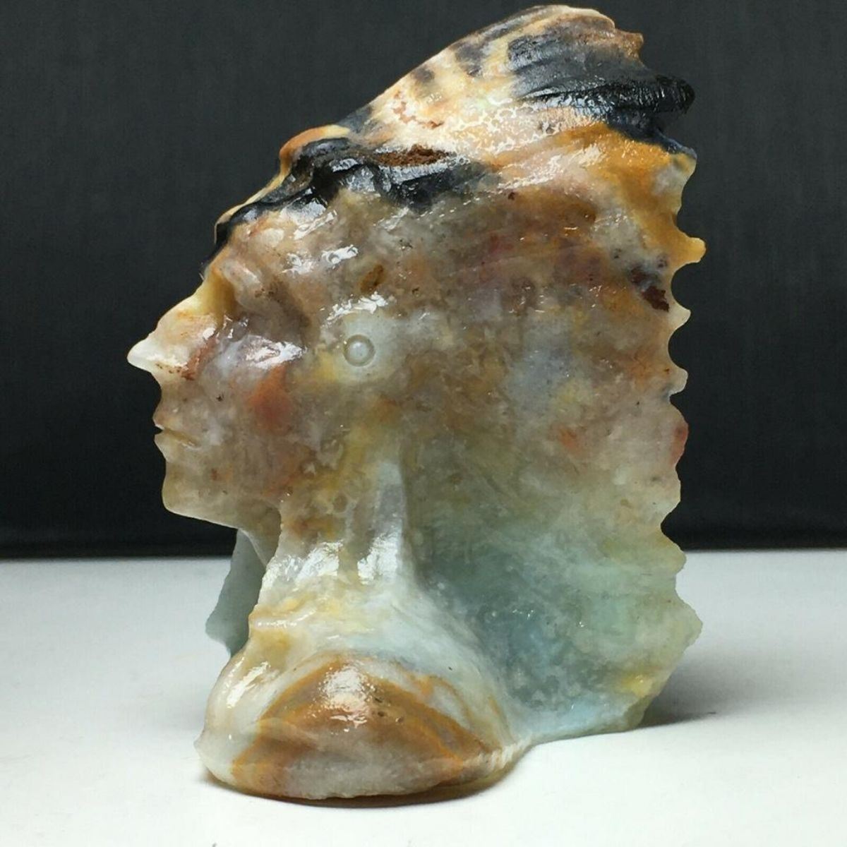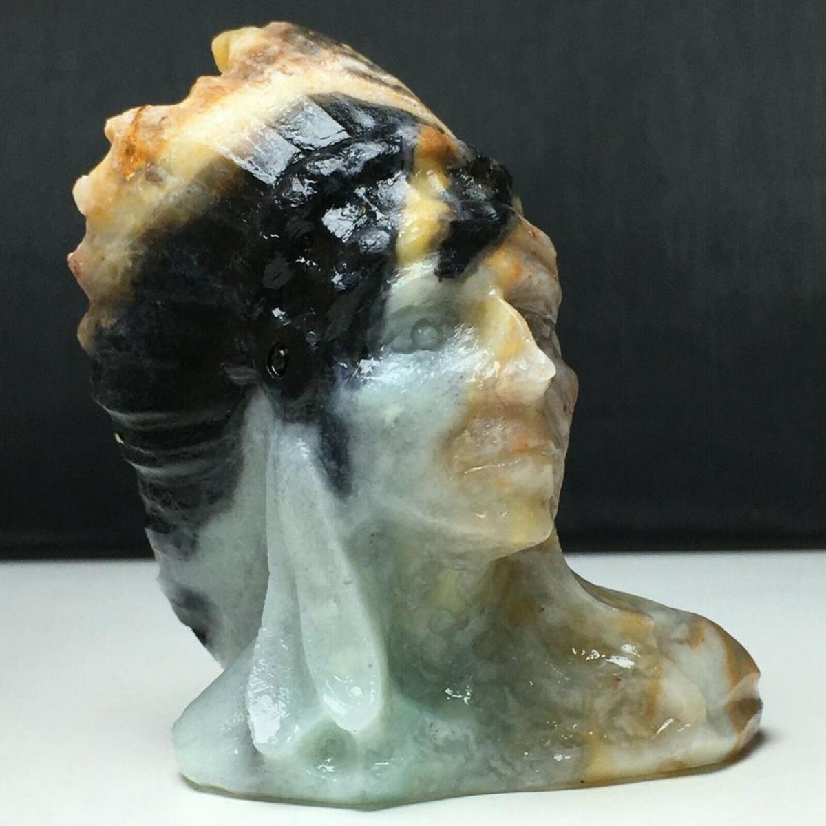 Natural Amazonite Crystal, carved into a bust figure of a Native American Indian Chieftain. 108 grams. 48x49x60mm.Â
