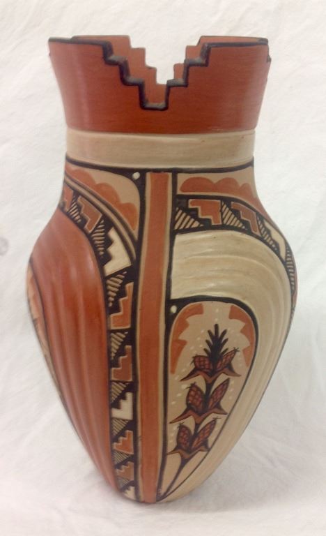 Carved And Decorated Indian Vase Artist Signed