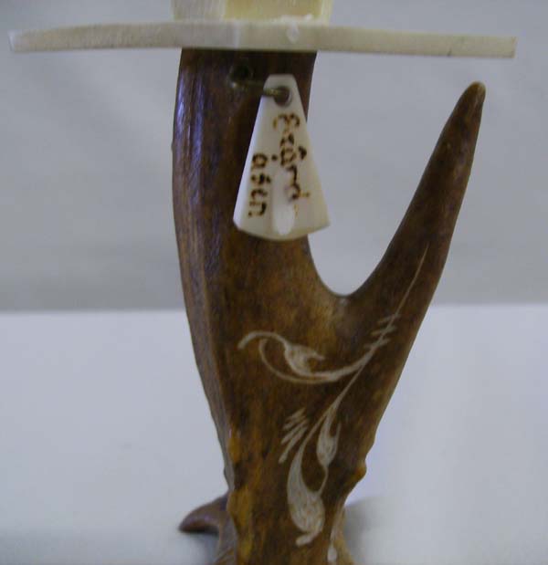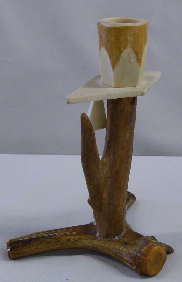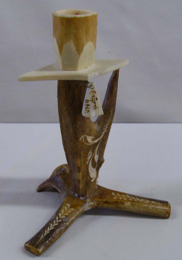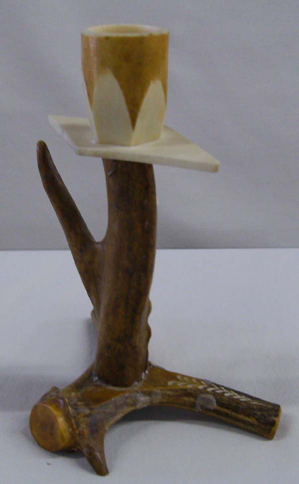 Carved antler candlestick holder. 5.25'' H x 4'' W. Buyers pay actual shipping and handling charges, (see terms and conditions for more information).