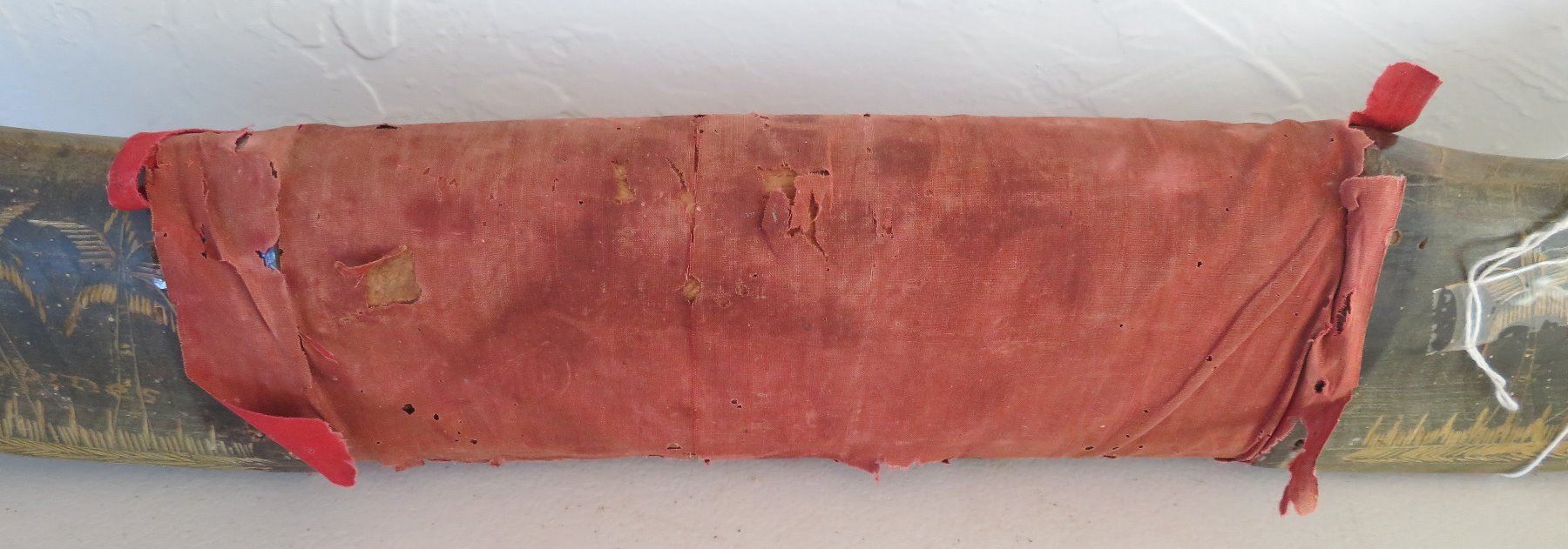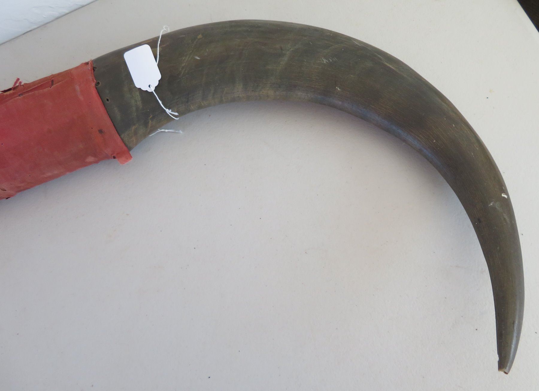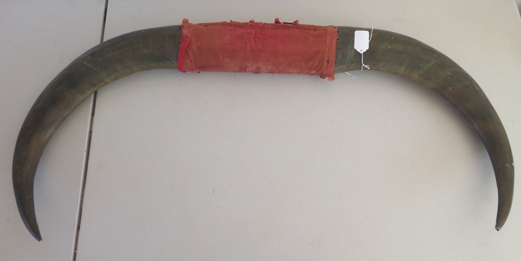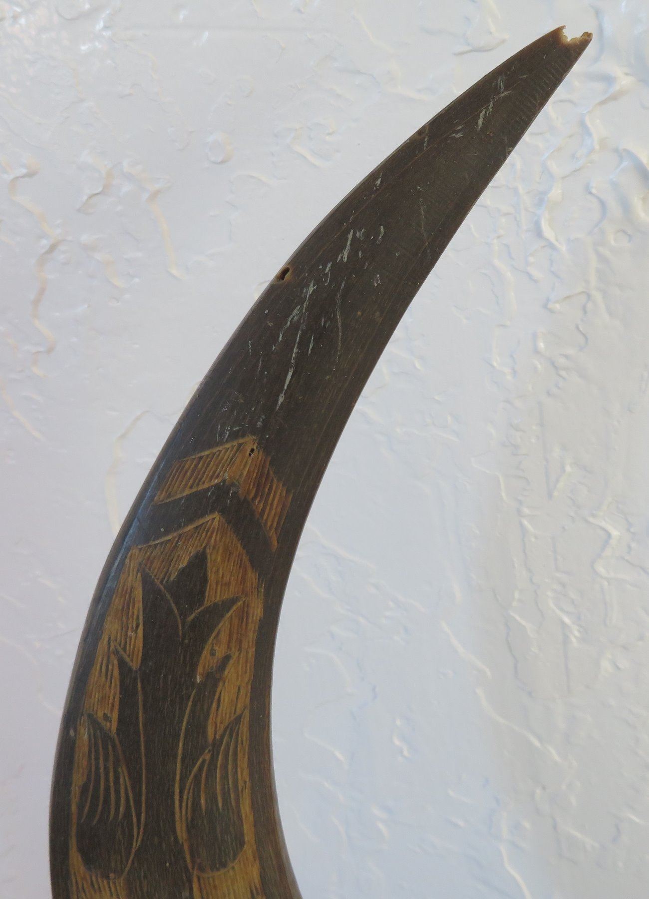 Carved Buffalo Horns, c. WWII period. Made of horn and wood, the item measures 16" x 36". Philippines. Condition: Wear, see images. Shipping: $85.00 USA estimate only, due to size and heavy weight, w/insurance and signature.