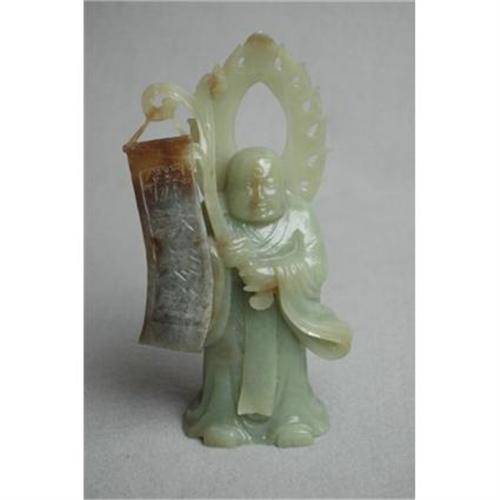 Carved Chinese Celadon Jade of Buddha Holding a Sign.Very good condition.
