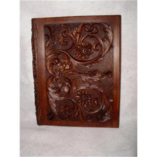 Handsome walnut,hand carved stationary or desk box from mid 19th century England is exceptional. Fabulous thick raised carving covers the front,back and hinged spine with solid walnut on the opening side with closure of 2 small brass hooks. The two spacious 6.75W X 9.5L interior compartments held stationary and envelopes,clippings or photos and as some have suggested doubled as a cigar box. The piece is in excellent condition and stunning on any desk or chest. Measures 15H X 12L X 1.75H.