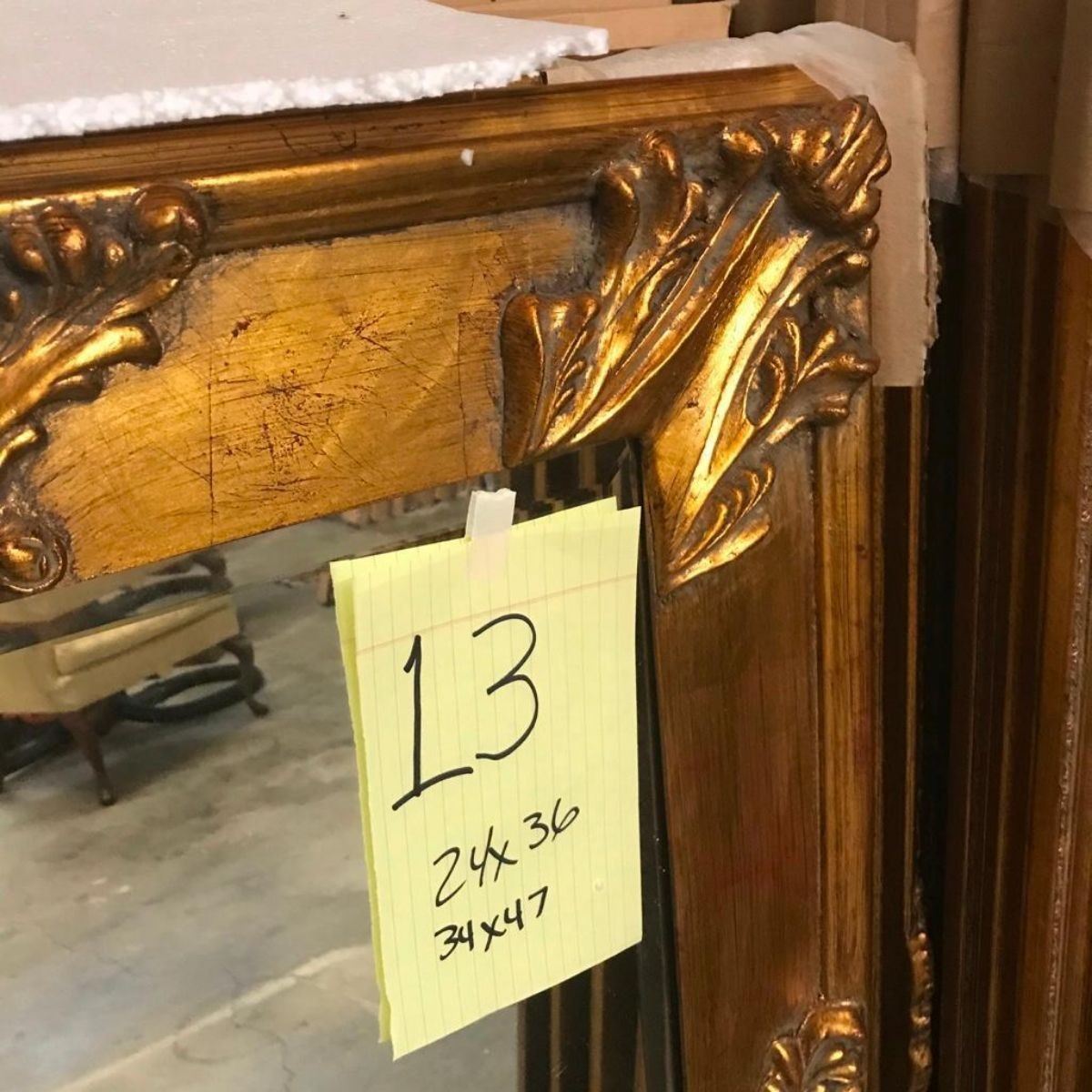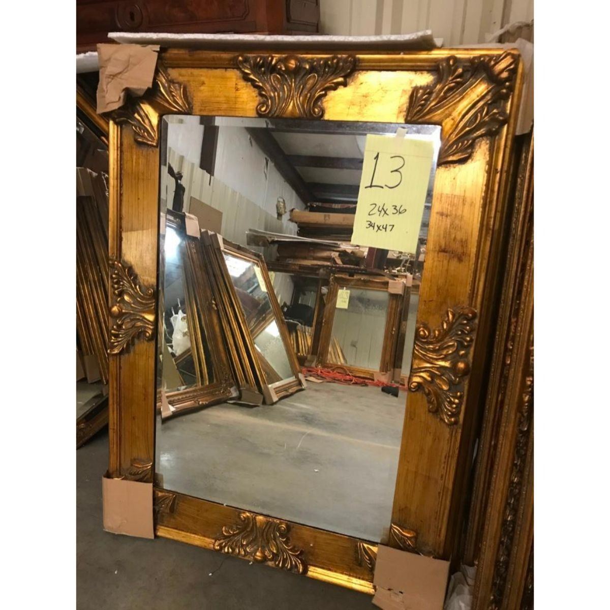 Carved Florentine-style gilt over solid wood frame, 34" X 47" overall, inset with 24" X 36" beveled mirror glass. **** this is a solid wood, heavyweight item, requiring special pick up/ delivery arrangements.Â