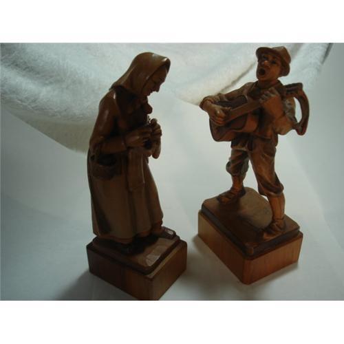 Wonderful little people She is knitting, He is playing a Musical instrument,extentive workmanship to make these Figurines. Wood has a wonderful patina.