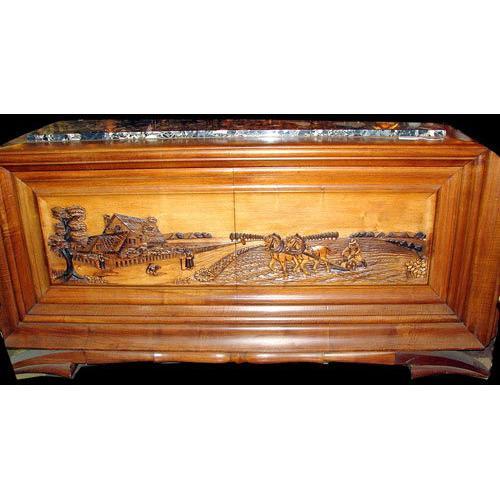 High style. Exceptional carvings. Can be used as back bar or front bar. Multi-colored woods. Original marble top. <BR><BR> Narrow crack in marble is not very evident.
