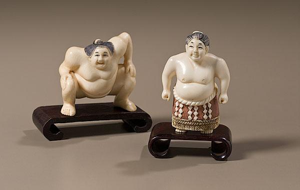 Carved Ivory Netsukes of Sumo Wrestlers,