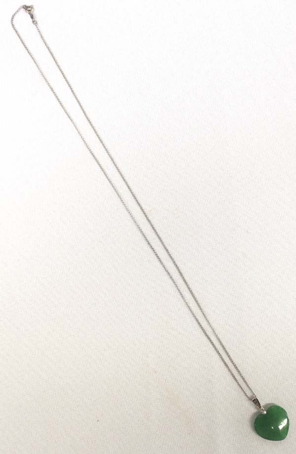 Carved Jade Heart, heart measures 1'' x 1'', chain measures 20''L end to end