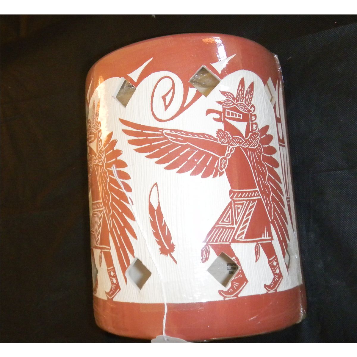 Carved Kachina Design Pottery Lamp 7"x9"x5" Signed by A &U Lucario, Shipping $15.00