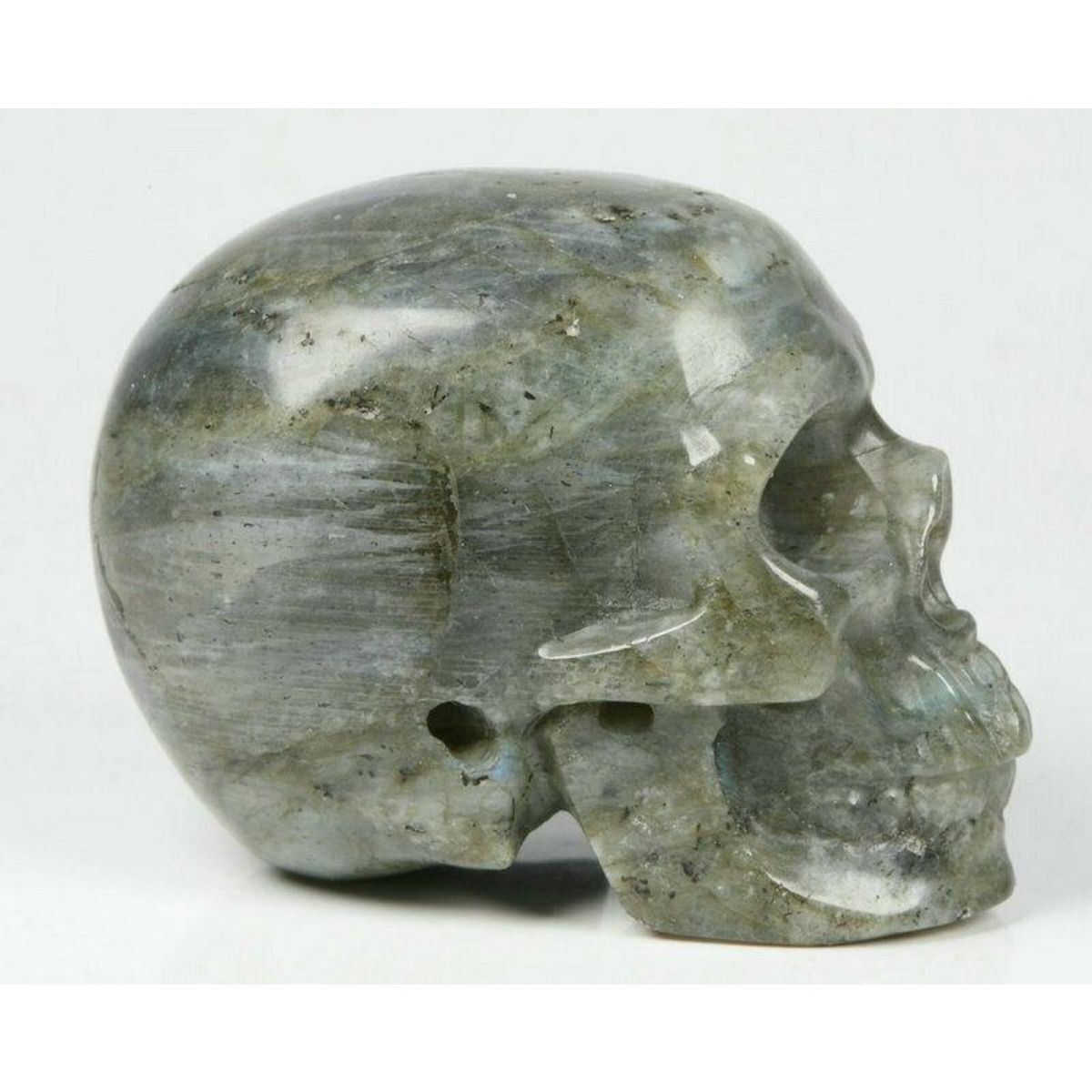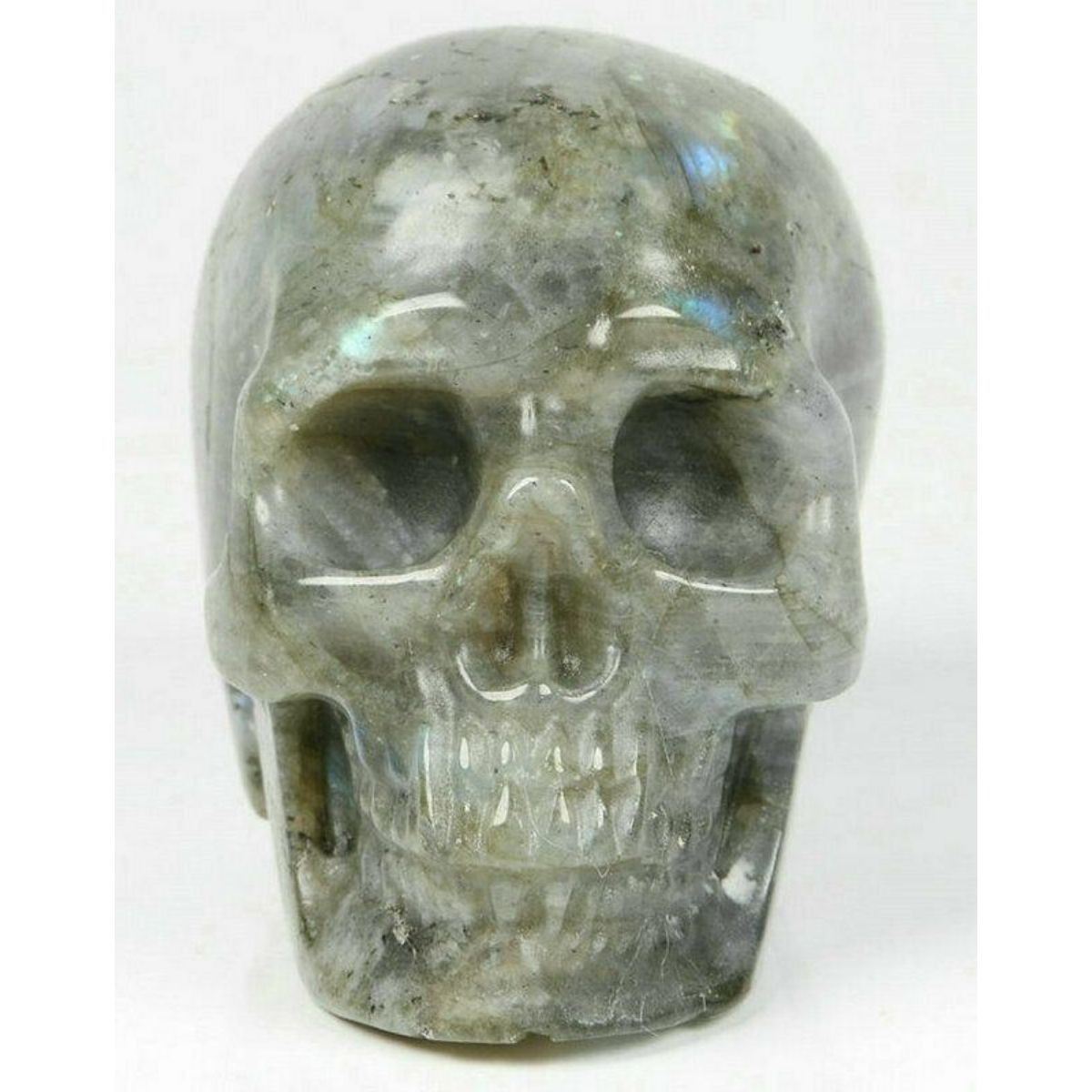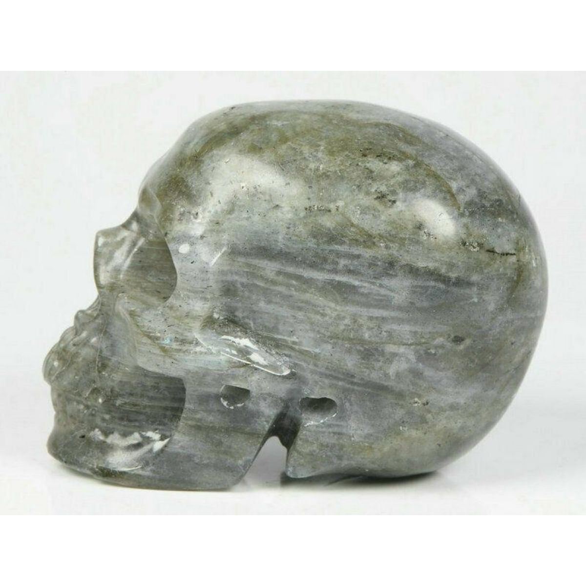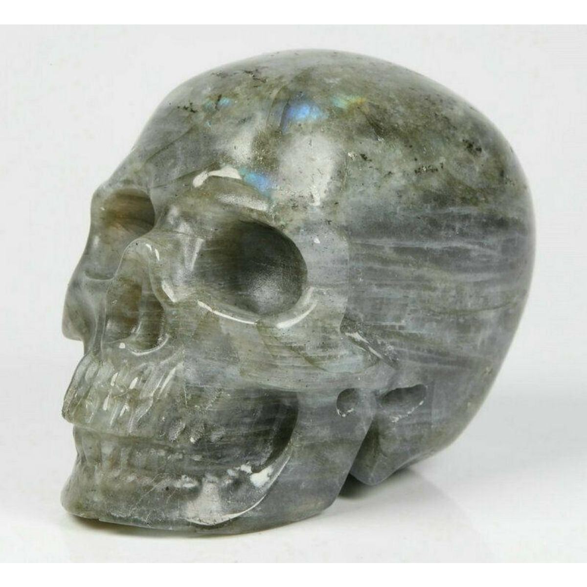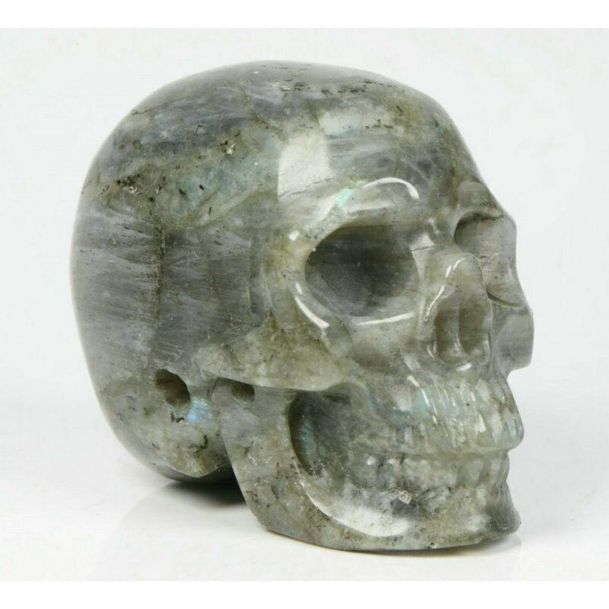 Carved Labradorite gemstone skeleton skull. 2" H.Â