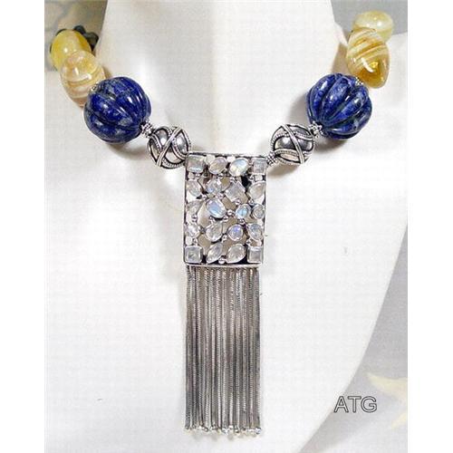 <tr><td>Title:Carved Lapis Fancy agate 925 Necklace~183Grams</td></tr>