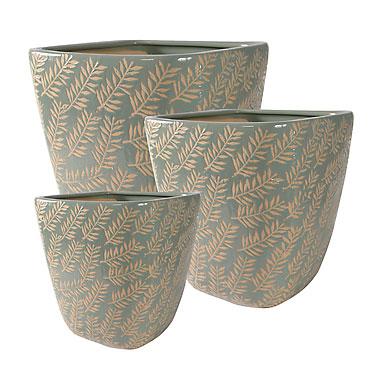 Carved Leaf Vase Set Of 3 L 15lx14dx15.5h, M 12dx14h, S 9dx13h. (D10814884)