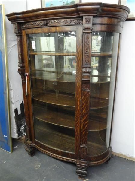Carved Mahogany Bow Front Curio Case