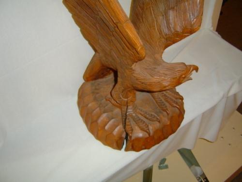 20" H Eagle Stool hand carved in Thailand from Monkeywood. 12" diameter top has a couple cracks due to the natural drying process as does the base, (cracks do not compromise structural integrity or natural asthetics).