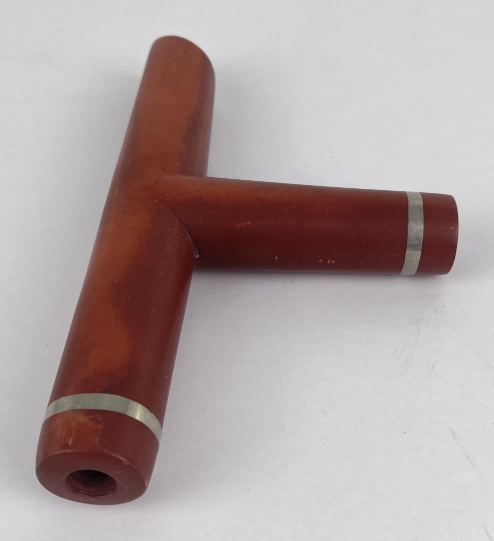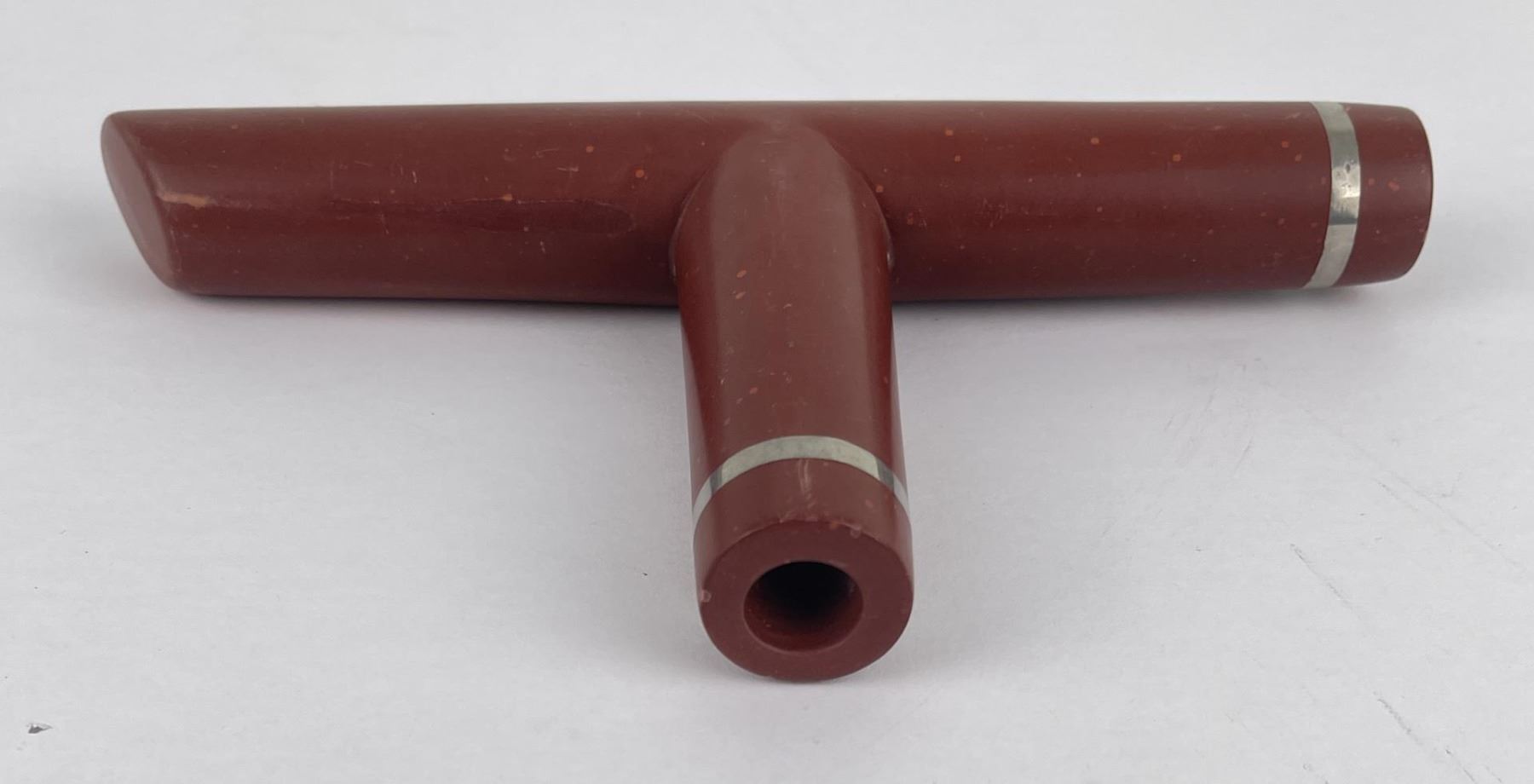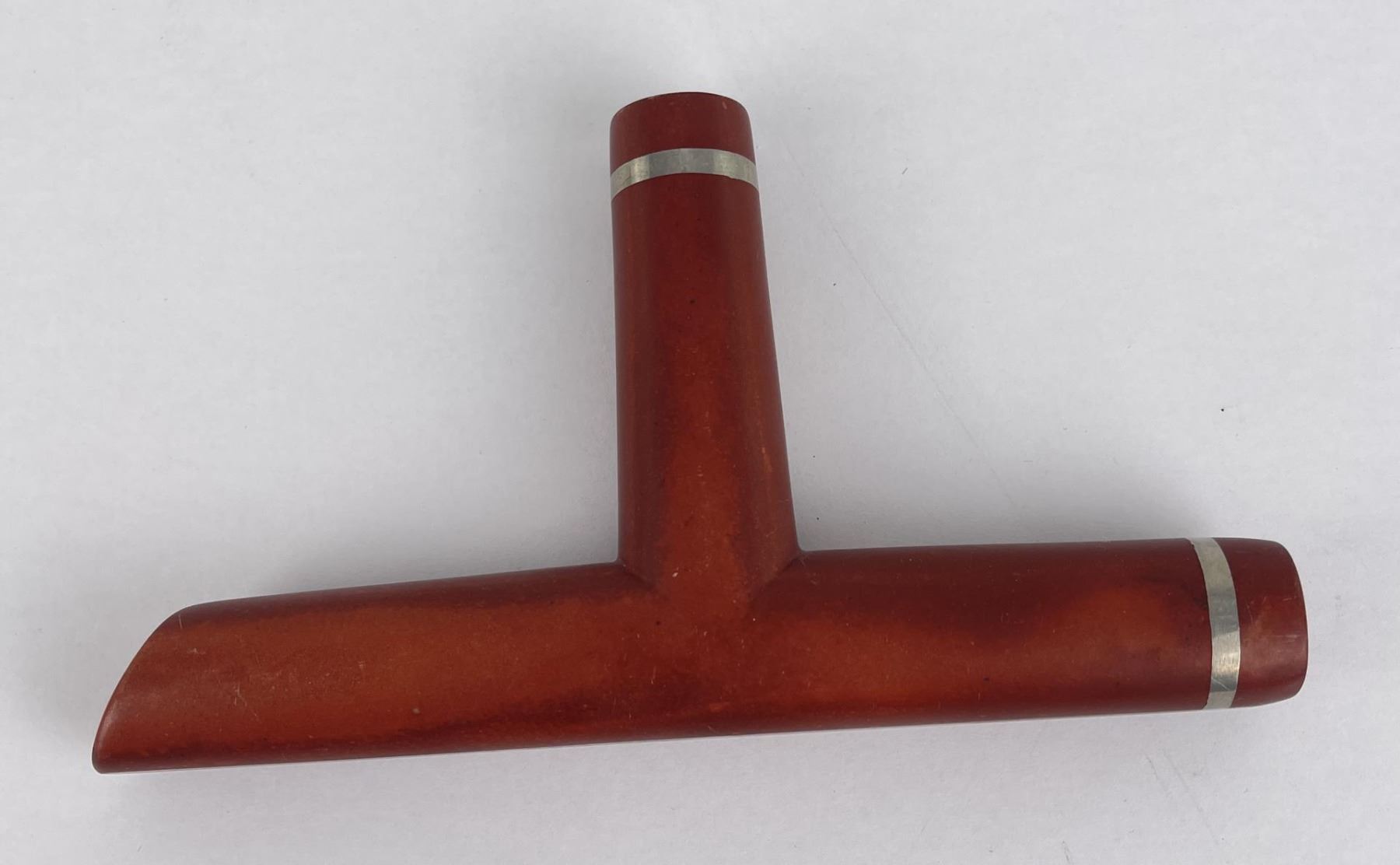Very nice pipe. Inlaid with Silver. 8" long. Made by Black Tomahawk St. Francis.