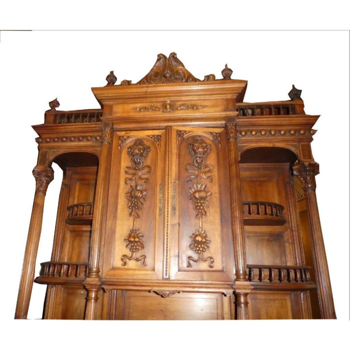 French carved walnut buffet with lion heads. Late 19th century. 105" high, 63" wide, 23.5" deep. 10202-040718-LA-00237