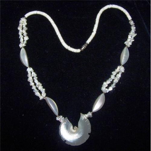 This gorgeous carved shell necklace is so pretty. The centerpiece is a delicatley carved bird.</em></td>