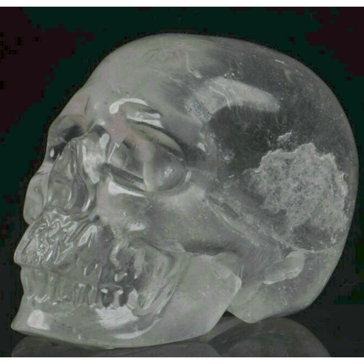 Carved Quartz Crystal, in the form of a skeleton skull. 2" X 1 1/2" X 1 1/4". ( 50x36x30mm ). 2.8oz weight.