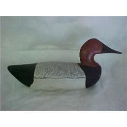 Carved Red head duck, metal eyes, weighted, figure 8 carved on bottom, 16" long X 6 3/4" high ...