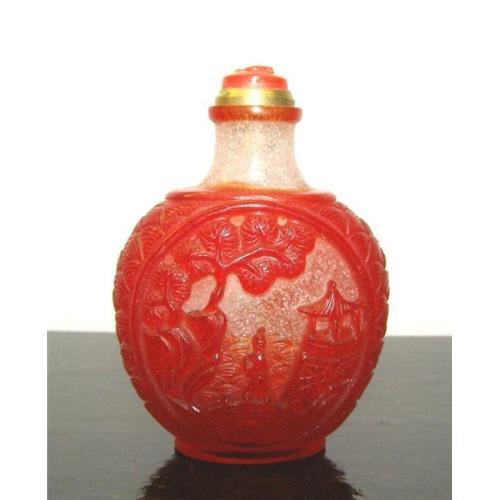 <tr><td>Title:Carved Scenery Red Perking Glass Bottle</td></tr>