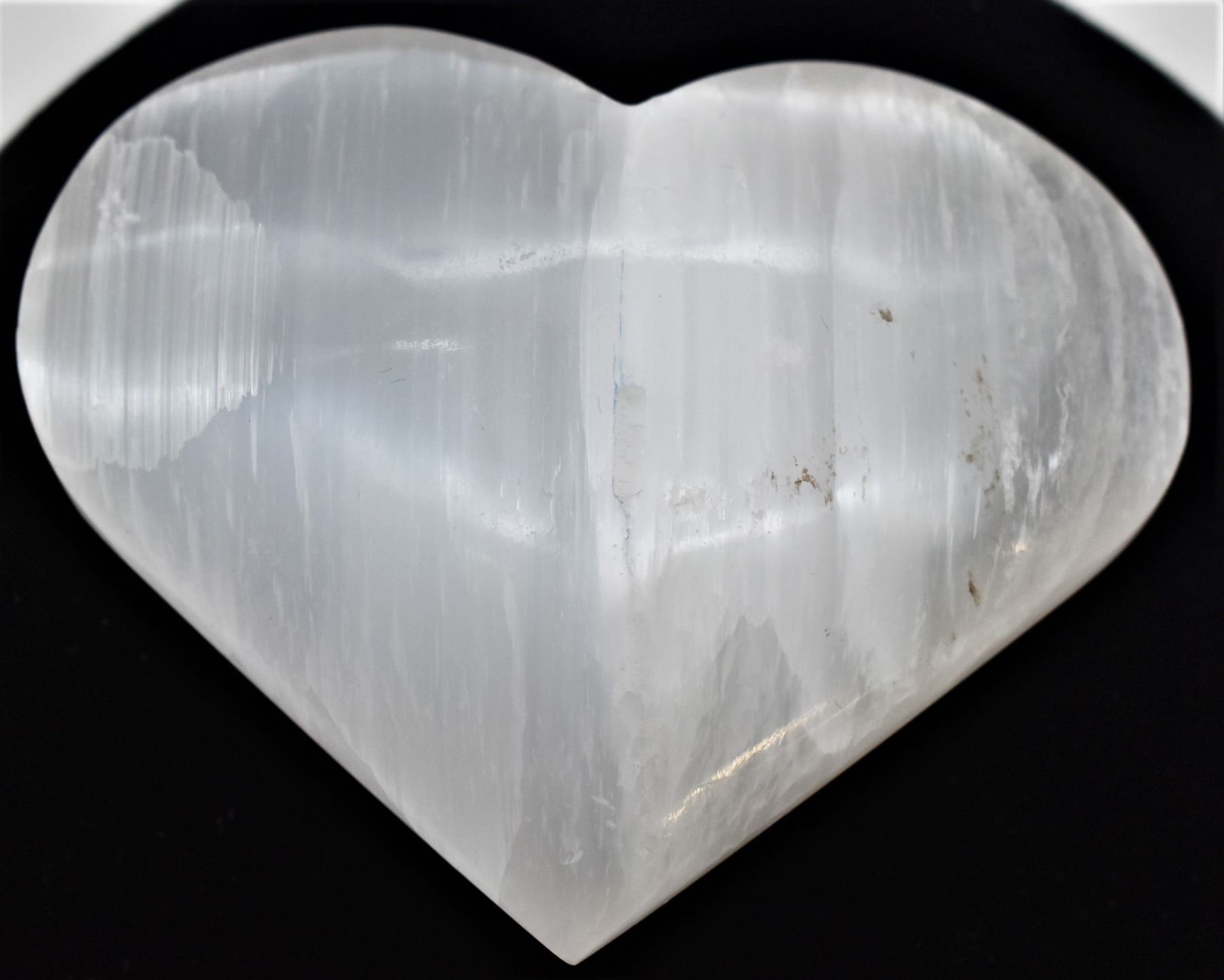 Carved Selenite Heart, measures 2.75'' x 3.25'', would make a nice paperweight