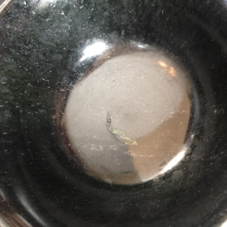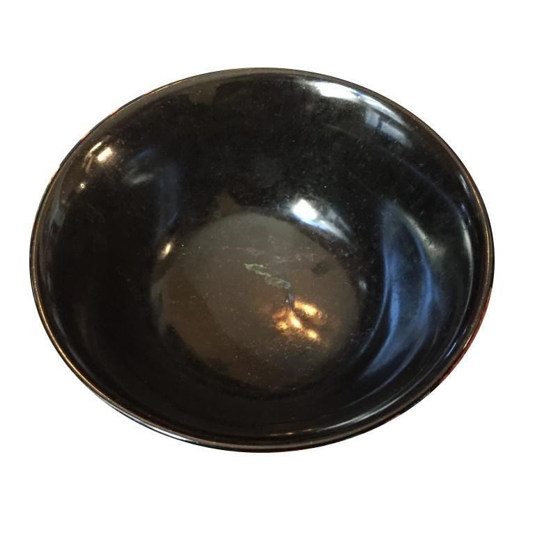 Hand-carved serpentine, also known as Chinese black green jade, gemstone bowl, for ritual purposes or for rice or soup. Thin lip with interesting translucent properties when held to light. 2.8oz. 4"D.