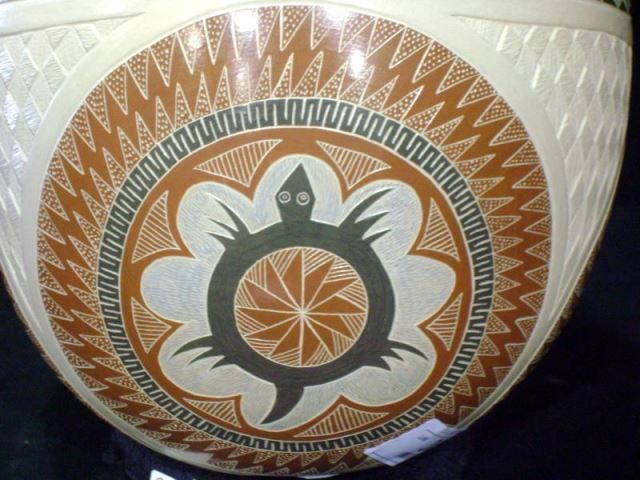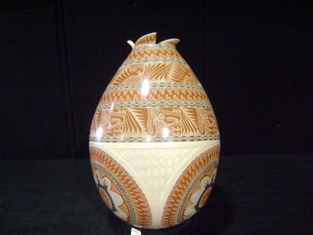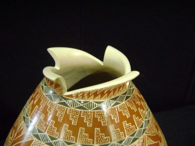 Carved Sgrafitto Mata Ortiz Pot, Mexico by Eleuterio Pina 13"x9", 2 1/2" Retail: $2,900.00