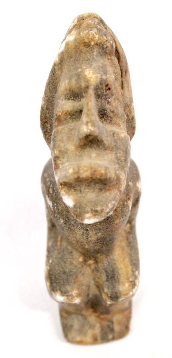 Carved Stone Figural Effigy, measures 2'' x 3'' x 7'', age and origin unknown
